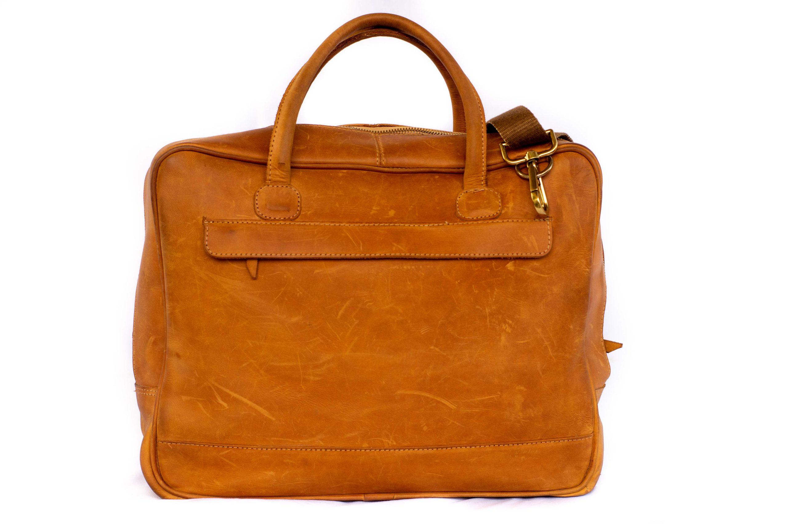 The Mdogo Mdogo Laptop Bag is crafted from rich brown leather, offering both durability and style. It features two top handles and a detachable shoulder strap for versatile carrying options. The bag includes two front pockets with zipper closures for secure storage. Inside, you'll find three smaller pockets, while the exterior boasts four additional smaller pockets for organized access to your essentials. This laptop bag combines functionality with a sleek, sophisticated design. Height: 10.2inches Width: 14.6inches, Base: 14.5inches