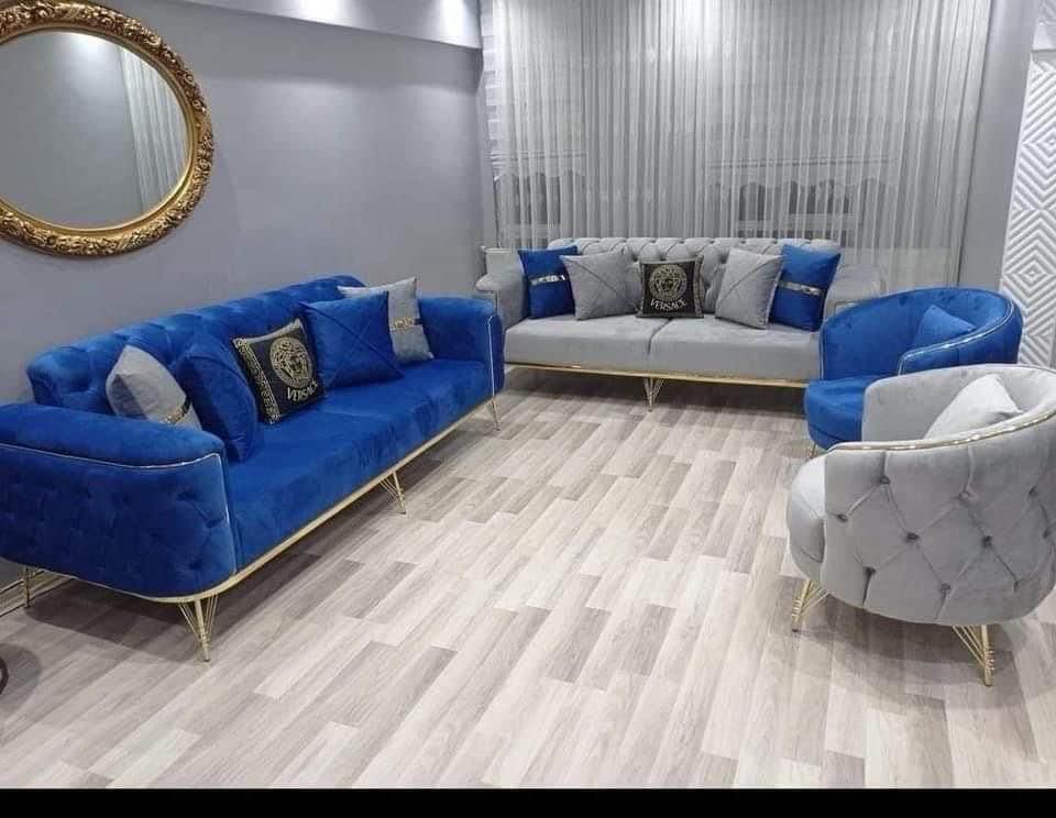 LUXURY SOFA SET Upgrade your living space with our stunning modern classic sofa set. Designed with plush fabric, gold-finished metal legs, and deep tufting, this set offers both comfort and class. Features: Premium fabric – Soft & durable Sturdy wooden frame – Long-lasting quality Gold-finish legs – Elegant & stylish Extra-comfy cushions – Perfect for relaxation 5-piece set – Ideal for modern homes Transform your home today. Order now.