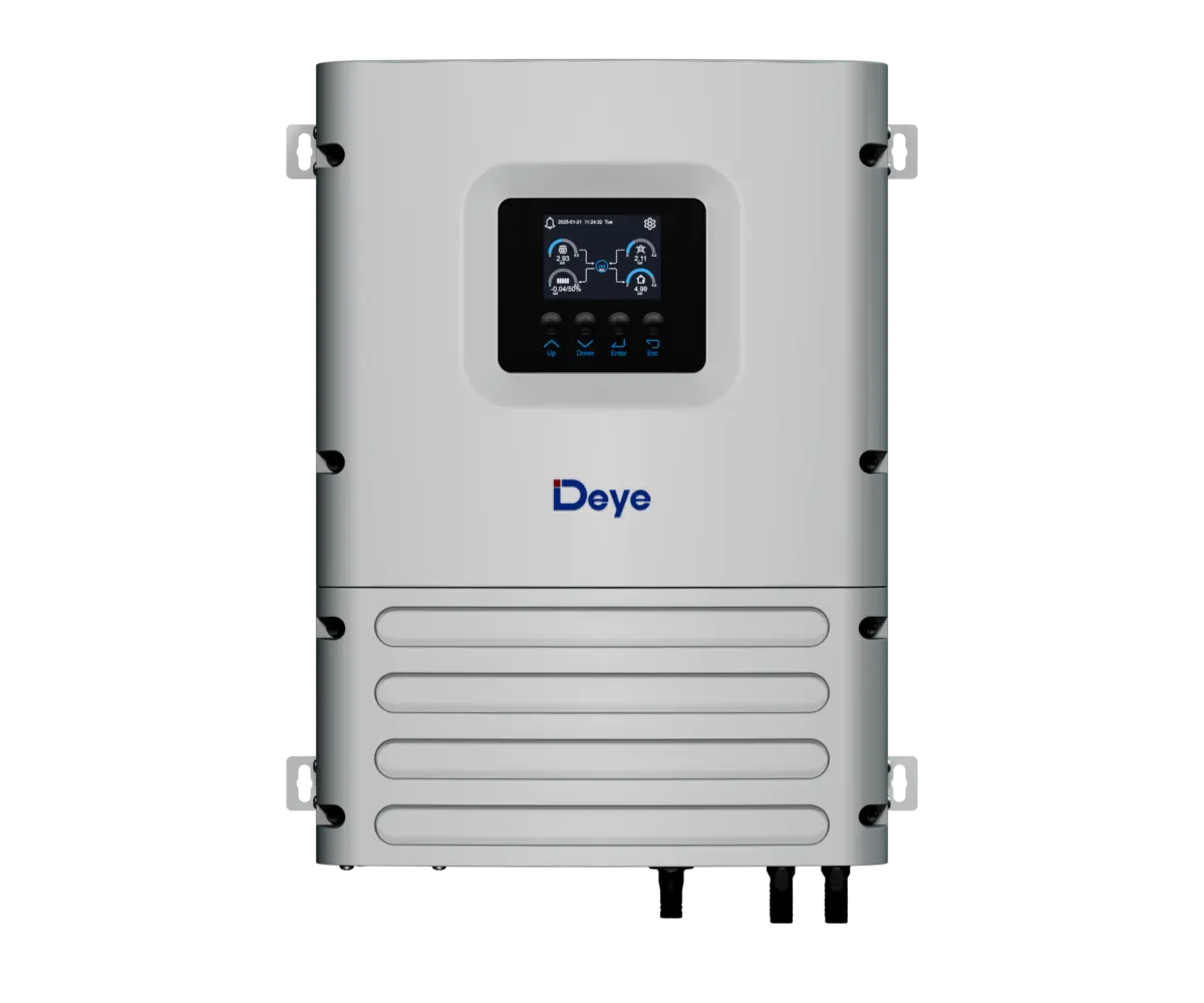 Colorful touch LCD, IP65 protection degree AC couple to retrofifit existing solar system Max. 16 pcs parallel for on-grid and off-grid operation; Support multiple batteries parallel Max. charging/discharging current of 140A 6 time periods for battery charging/discharging Support storing energy from diesel generator.Smart Monitoring Platform Thanks to the smart monitoring platform, Deye full series inverter products support remotely shutdown immediately when accident occurs.Setting parameters and FW update remotely, which makes PV plant O&M easier.