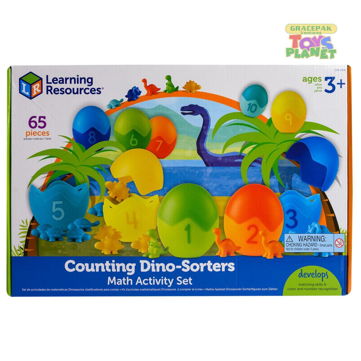 Our prehistoric play set Counting Dinos makes learning into an engaging, interactive game. Toddlers will practice counting, sorting and number recognition as they match the baby dinosaurs to the correct eggs. Or, they can enjoy hours of imaginative play with their new dino friends. Cracking open and putting together the egg shells helps build fine motor skills too. Set includes 10 two-piece dinosaur eggs and 55 dinosaur counters.