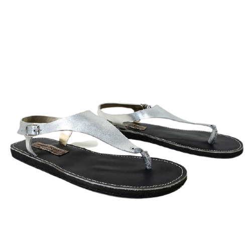 Our easy slip on Watamu sandals have an adjustable buckle strap for secure fit and are so light to walk in. Outer Sole: Recycled Tyre. Inner Sole: Leather. Straps: Leather with silver foil. Size: 2-10UK
