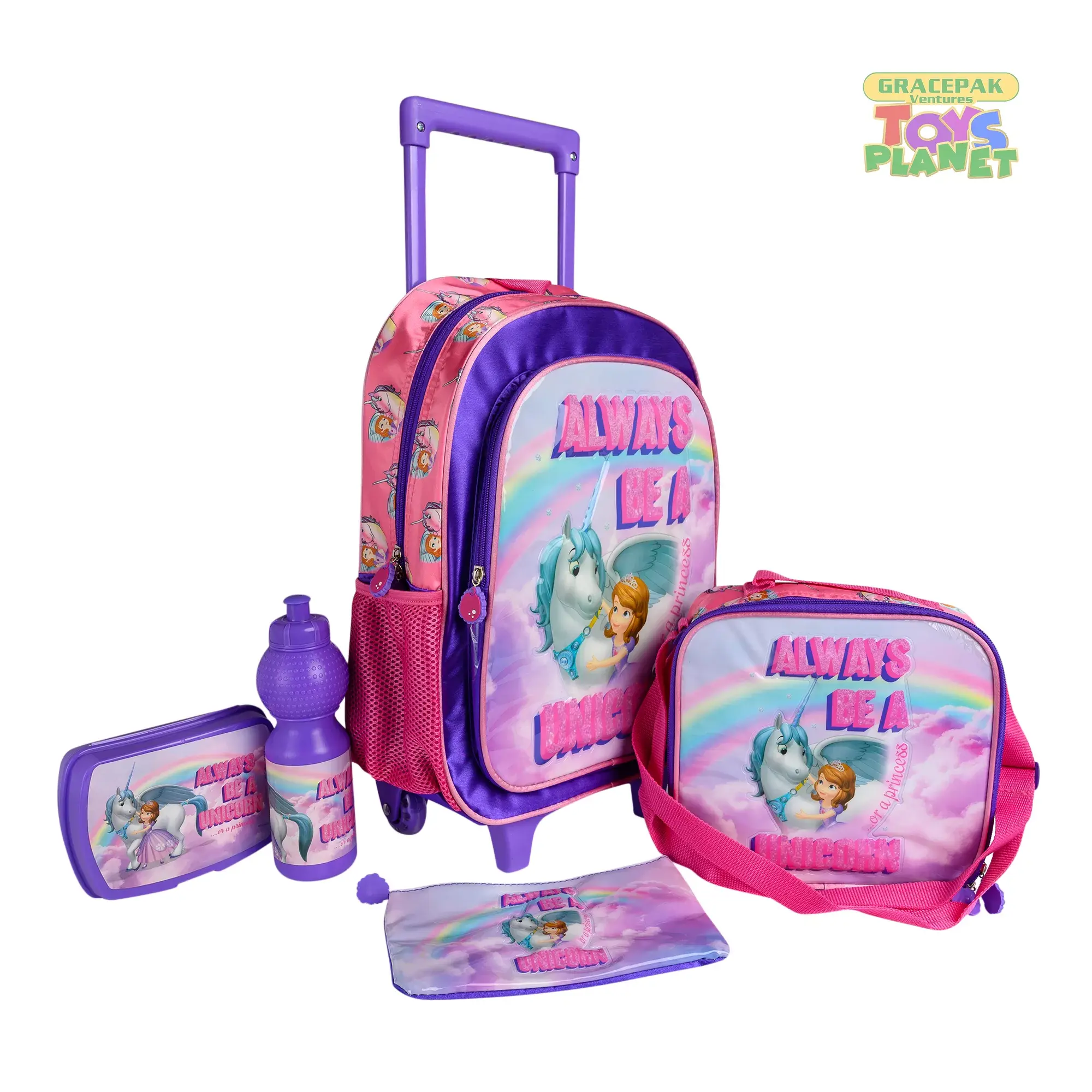 Disney_Sofia the First n 5n1 Set, 16" Trolley, Lunch Bag, Pencil Case, Lunch Box, Squeeze Bottle