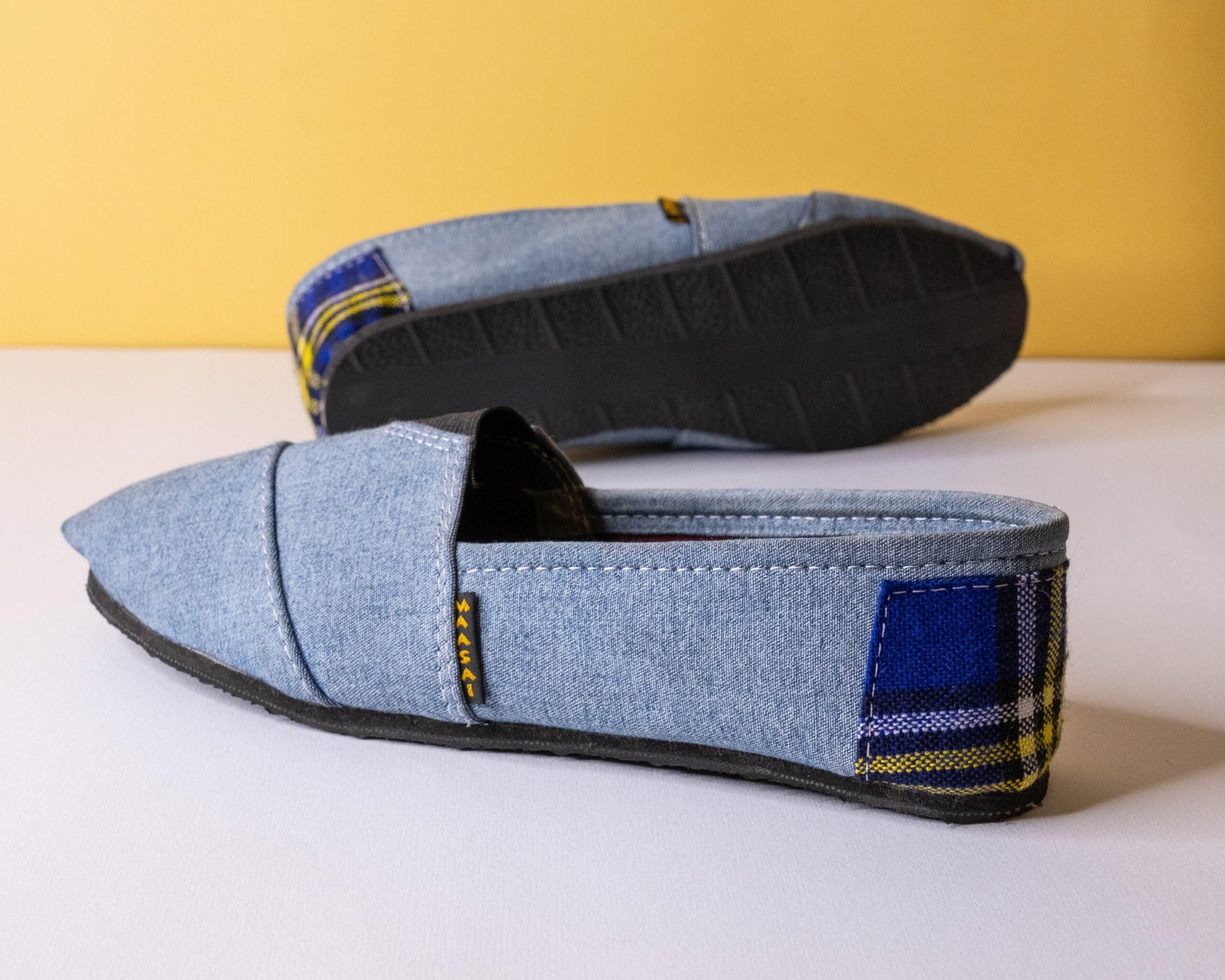 Hatua in swahili means taking a step.These unisex pair of shoes with maasai shuka are here to help you take each and every step in life cofidently and comfortably. Sole: Recycled tyre Upper: Denim i.e Dyed cotton yarn woven in warp-faced style wuth a touck of cotton maasai shuka. SIzes: 3-14UK