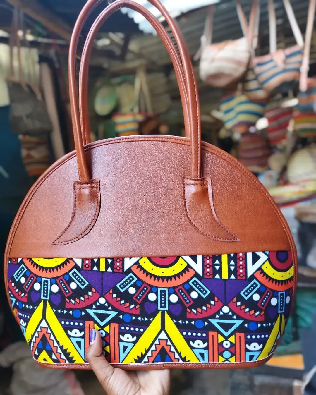safari is a swahili word for ‘journey’, and this is what this bag speaks. Safari is an ideal travel bag. It is a 17*17 inches hence spacious. It is made from PU leather which is quality and durable. The kitenge detail on Safari makes it beautiful and as a traveller using it, you will stand out!
