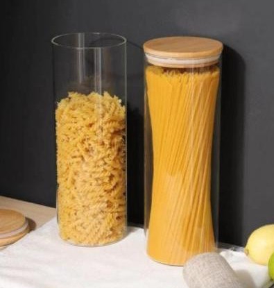 *✅Spaghetti/ Cereal storage jars* *✳️Material* Borosilicate glass Bamboo lid *❇️Capacity* 2,000ml